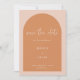 A simple modern weddings save the date with a terracotta arch shape on a blush pink background. "save the date" is in white handwritten style font. Personalize with your details with a modern layout in white font and add your favorite photo on the reverse.