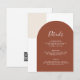 Keep your guests informed in style with this coordinating enclosure card from Minimal Bohemian Terracotta Arch Collection. Featuring the same boho burnt orange arches and beige cream accent as your matching invitation suite, this details card is topped with an elegant classic white calligraphy title that reads "Details." Inside, you'll find space to customize accommodation options, reception details including dinner and cake cutting times, and your wedding website link. The back of the card features a convenient QR code, allowing guests to scan and visit your website instantly from their phones. Perfect for including with your invitation stationery essentials, this card ensures every guest has the information they need while maintaining the modern copper aesthetic you love. The nature inspired color palette is perfect for a fall or summer wedding.
