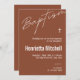 Yes, you can print on the back of your invitation for free! Most designs already have a corresponding design on the back that can be personalized using the Design Tool and going to Layers. This is a great way to communicate more information or further personalize your Modern Terracotta Calligraphy Baptism Invitation. The option is really up to you.