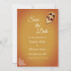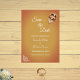 Elegant golden brown with terracotta shades romantic Save the Date Wedding Card. The chrysanthemum flower on the front side and two hearts on the back side can be customized. Ideal for couples who believe in eternal love and a match made in heaven. The chrysanthemum flower stands for royalty.