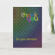 A thank you for your donation card with a very modern feel. Repeating circles form an interesting abstract background. The writing is in a font that matches and complements the circles.