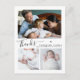A simple and elegant modern birth announcement featuring a 3 photo collage of your newborn with "Thanks" in a stylish script and your baby´s name and stats in modern typography with a tiny heart above. On the reverse, there is your customizable thank-you message. Use the "customize" button to replace photos and edit text.