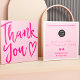 Modern minimalist and stylish retro neon pink business order thank you brush script font with a heart. Add your social media. With an elegant signature script font, all the colors are editable , add your logo.