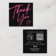 Modern thank you script order neon pink Qr code Square Business Card