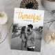 Modern Thankful Yellow Watercolor Script Photo Holiday Card