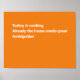 Decorate for Thanksgiving with a modern haiku in white on an orange background. The original poem reads: "Turkey is cooking / Already the house smells great / Anticipation" in three lines without the slashes at the top of the design. If you want to change the bright orange color, click "Customize" and select a different background color in the sidebar. Then click "Done" and "Add to cart" to purchase your customized item.