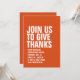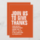 With bold white typography, this orange Thanksgiving dinner invitation is easily customized and sets the tone for a fun and casual turkey day feast