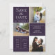 Announce your wedding day with this Modern Three Photo Collage Save the Date Announcement. Save the Date design features a modern and minimalist layout and three photo placements for the happy couple. Add a photos and wedding details to customize. Background design features a simple geometric pattern.