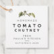 Editable Homemade Tomato Chutney canning label featuring a watercolour tomate leaf. Make your own canning labels for your favourite homemade tomato recipes. To use on your canning lid or on the side of the canning jar. Perfect for preserves, homemade gifts or as kitchen pantry organiser.