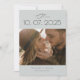 A modern Save The Date card that focuses on the date in big bold numbers against a dusty blue background has a wisp of calligraphy and trendy topography script adding just the nuance needed. Easily customize the name, date, location, and photo to make it your own.