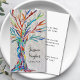 This unique business card is decorated with a Tree of Life design on a gray background.