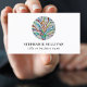 This unique business card is decorated with a colorful mosaic tree of life design.