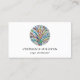 This yoga instructor business card is decorated with a colorful mosaic tree of life design.