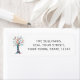This return address label is decorated with a colorful tree.