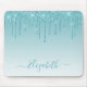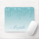 Modern Elegant Fashionable and Trendy Aqua Blue Glitter Mouse Pad personalized with your Name. Stylish Script. Dripping Glitter with sparkles.