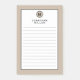 A modern trendy lined notepad with a minimalist design with a stylized monogram medallion. Custom name or custom text presented on a simple white background, framed by a beige border. Personalize using the fields provided or use the 'message' button to contact the designer for help.