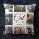 Modern family keepsake for the BEST CAT EVER. Customize with your own favorite 8 photos and your pet's name. This design features cute paw prints and minimal script typography on a throw pillow. Change the background color under "Click to customize further" within the "Personalize this template" tab.