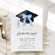 Modern Trendy Blue Bow Graduation Cap Graduation Invitation