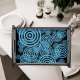 This serving tray features a modern design with blue circles on a black background. Digital art. Wonderful for your kitchen, also a pretty gift idea for any occasion!