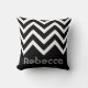 A crisp chevron stripe design with a matching solid area for adding your name, monogram or other text. The reverse side of the pillow is without the monogram to give you versatility in how you display the pillow. Shown here in black and white, replace the sample name in the design template with your name and you're all set.