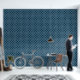 A modern, trendy quatrefoil design in navy blue.