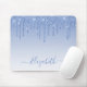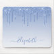 Modern Elegant Fashionable and Trendy Dusty Blue Glitter Mouse Pad personalized with your Name. Stylish Script. Dripping Glitter with sparkles.