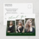 Modern Trendy Green & White 3 Photo Grad Thank You Postcard
