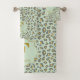 A modern and trendy bath towel set in mint and gold leopard print.
