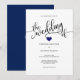 Modern Trendy Navy BLUE & White Heart Wedding Invitation