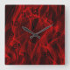 Modern Trendy Neon Red Curvy Line Abstract Pattern Square Wall Clock