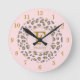 Modern Trendy Pink Gold Leopard Pattern Monogram Round Clock