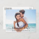 Modern Trendy Calligraphy Script Couple Photo Save The Date Engagement Announcement Postcard