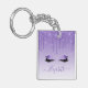 Modern Elegant Fashionable and Trendy Violet Purple Glitter Keychain personalized with your Name. Sparkling Eyelashes. Stylish Script.