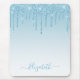 Modern Elegant Fashionable and Trendy Light Blue Glitter Mouse Pad personalized with your Name. Stylish Script.