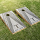 Modern Triangle Stripes Gray Wood Family Name Cornhole Set. Personalize this custom design with your own family name and monogram initial. The perfect summer lawn party game for your family lakehouse, cottage, or beach house.