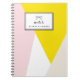Modern note book featuring geometric pattern in white, blush, yellow and beige. The notebook can be personalized. Other colors are available.