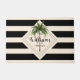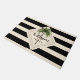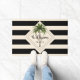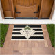Style out your front door or patio entrance with this Modern Tropical Beach Palm Tree Script Monogram Doormat. It is an elegant design with black and white stripes background and a palm tree on the center. Family monogram initial is in light grey and family's last name is in black calligraphy script lettering. Click personalize template option and follow the prompts.