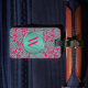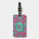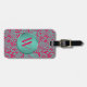 A modern and lush tropical damask pattern in aqua and fuschia embellished with a modern round disc frame and monogram. Personalize with your initials, name or other text by replacing the sample text shown in the design template and the contact information on the reverse side of the luggage tag. You can change fonts and font sizes to accommodate your text.