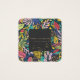 Make a bold impression with this vibrant, square business card template. Featuring a lush, colorful tropical leaf border against a sophisticated black background, this design is perfect for jewelry designers, artists, and creative professionals. The template includes a dedicated space for a QR code on the back, seamlessly blending artistic flair with modern digital networking.