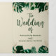 Tropical Foliage Trendy Greenery and Leaves Border Personalized Wedding Ceremony Tri Fold Programs. Perfect for your wedding or event stationery order of services list. In a bold color palette of rich greens, emerald, and gold foil look. This design is perfect for a beach, destination, or summer wedding. With feelings of a tropical paradise, this vivid palm leaf design will compliment your beach or tropical wedding venue. In a dark green, teal, emerald, greenery, and gold color scheme - Wedding Ceremony Tri Fold Programs.