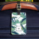 Modern tropical watercolor leaves, monogrammed luggage tag.