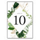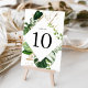 Elegant tropical table number cards featuring the table number framed by watercolor tropical leaves in shades of green complimented by faux gold foil foliage. The design repeats on the back of the card. Designed to coordinate with our Tropical Gold wedding collection. To order each table number card, simply type the number and add to your cart. Repeat for each number until you're finished.