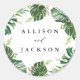 Modern Tropical Leaves Gold Personalized Wedding Classic Round Sticker