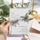 This modern minimalist tropical wedding program features minimalistic line art palm trees that are fully color customizable alongside the text. Our contemporary tropical wedding collection is perfect for a beach or destination wedding, and this program card can be edited to fit your specific wedding needs!