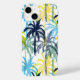 Modern Tropical Palm Tree Pattern Case-Mate iPhone 14 Case This tropical design features palm trees in green, blue and yellow on a white background