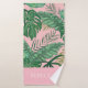 Modern Tropical Pattern Monogram Girly Pink Bath Towel Set