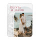 This Save the Date Magnet from the Leilani Collection features bright, bold colors and modern typography framing your engagement photo, sure to make a lasting impression on your guests! Personalize it with your details easily and quickly. Simply press the 'customize it' button to further re-arrange and format the style and placement of the text.