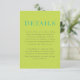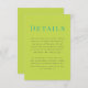 This Wedding Details Enclosure Card from the Leilani Collection features bright, bold colors and modern typography, sure to make a lasting impression on your guests! Personalize it with your details easily and quickly. Simply press the 'customize it' button to further re-arrange and format the style and placement of the text.