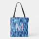Modern turquoise blue tie dye name monogram tote bag