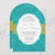Modern Turquoise Chartreuse Damask Wedding Invite
